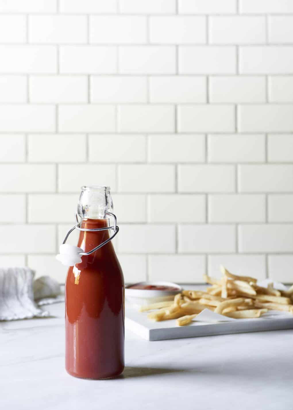This homemade ketchup recipe is super easy and tastes incredible. Just throw everything into your blender and simmer.