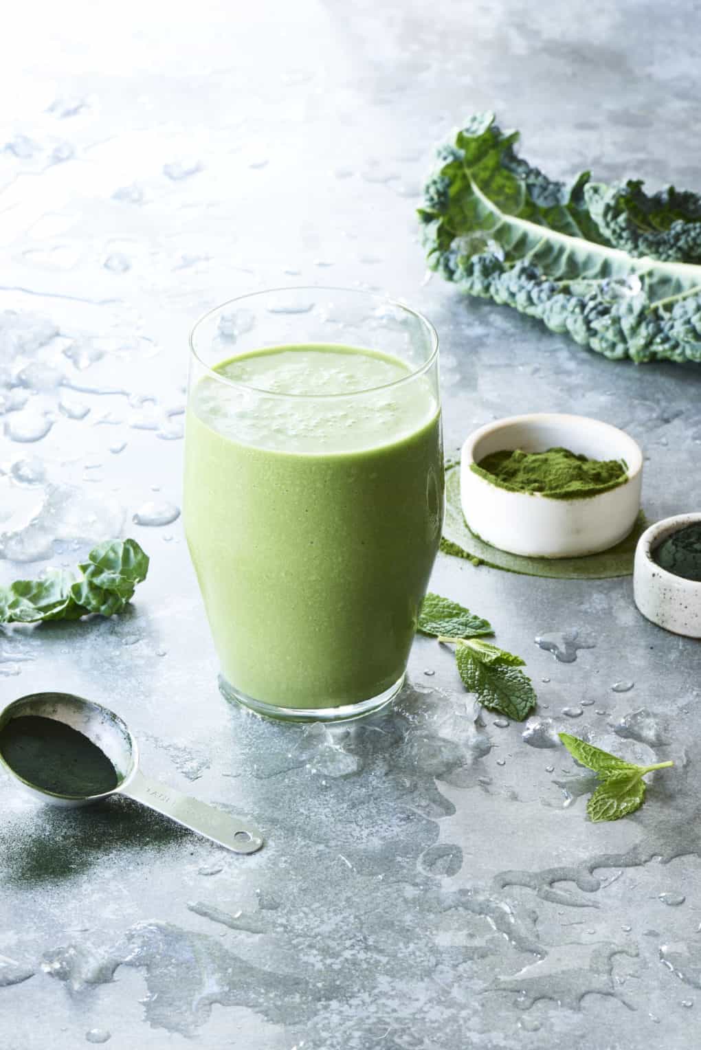This sweet creamy and delicious spirulina smoothie also contains chlorella and wheatgrass and won’t make you gag!