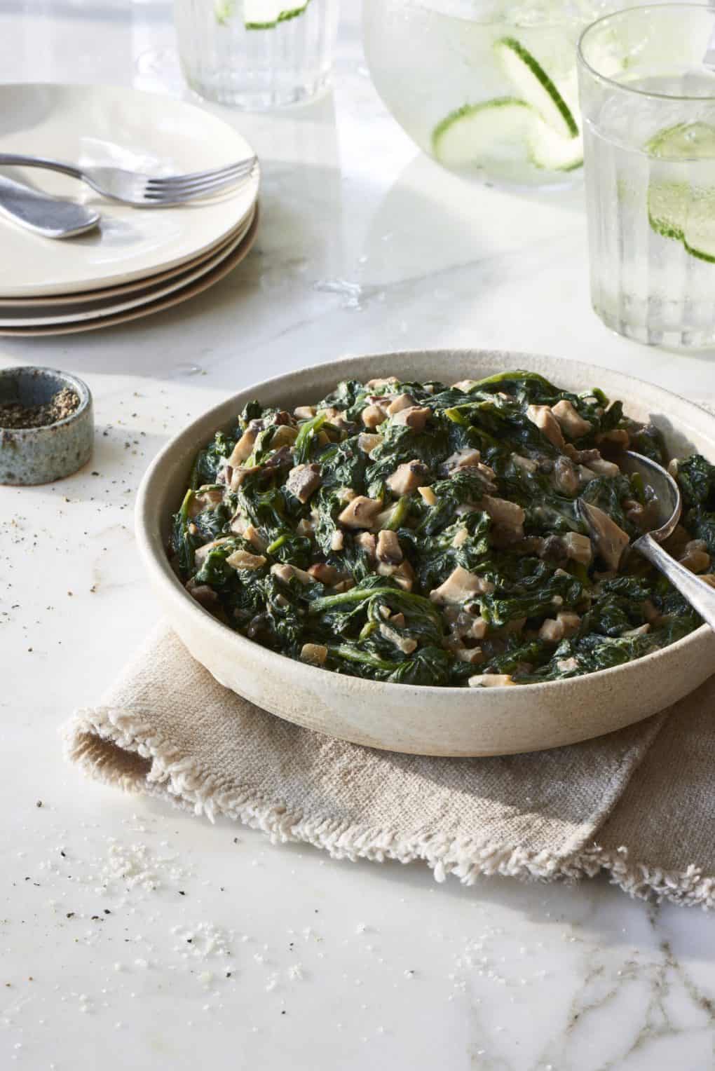 Vegan Creamed Spinach with Shiitakes